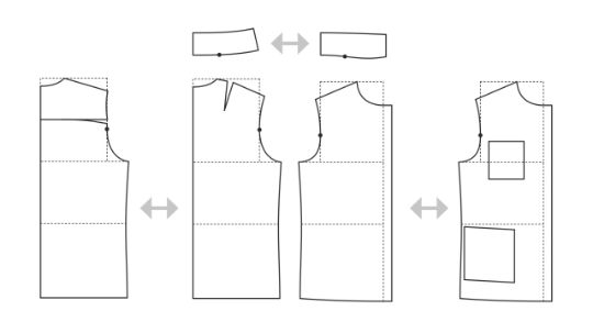 На конструкцию куртки могут быть вызваны модули английского воротника, капюшона и других элементов. На конструкцию брюк можно вызвать модуль верхней части комбинезона.