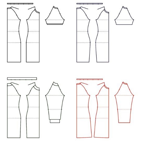 Модуль можно использовать для разработки платья, блузы, футболки. Градация по размерам и ростам.