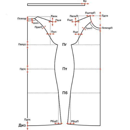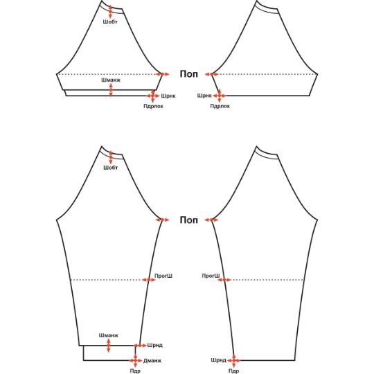 - Изменение ширины рукава вверху (под проймой)