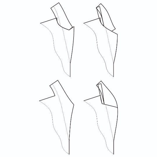 Модуль вызывается на полочку любого изделия с оформленными линиями плеча, горловины, борта. Можно использовать для разработки воротника с застежкой без захода.