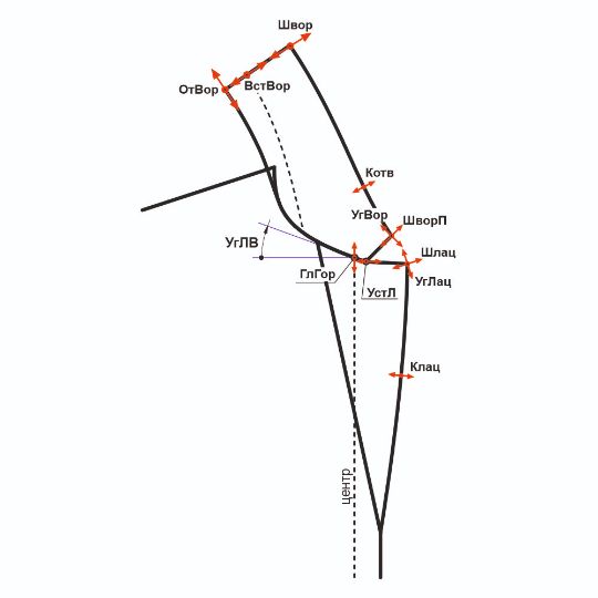 Для вызова модуля английского воротника последовательно указать точки и линии следуя подсказкам программы. Корректировке формы воротника и лацкана производится в окне параметров Р.