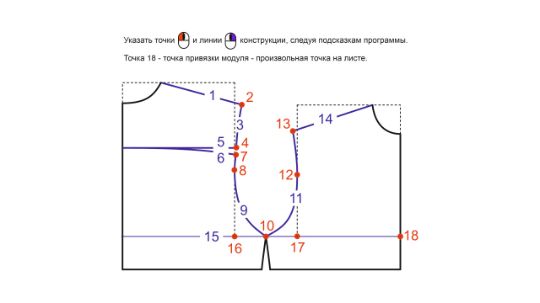 Модуль сорочечного рукава применяется для разработки сорочек, блуз, курток и трикотажных изделий. Вызывается на спинку мужского, женского или детского изделия с оформленной кокеткой, рельефами или вытачкой в пройму.