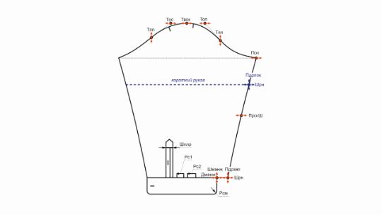 - Изменение ширины рукава вверху (под проймой)